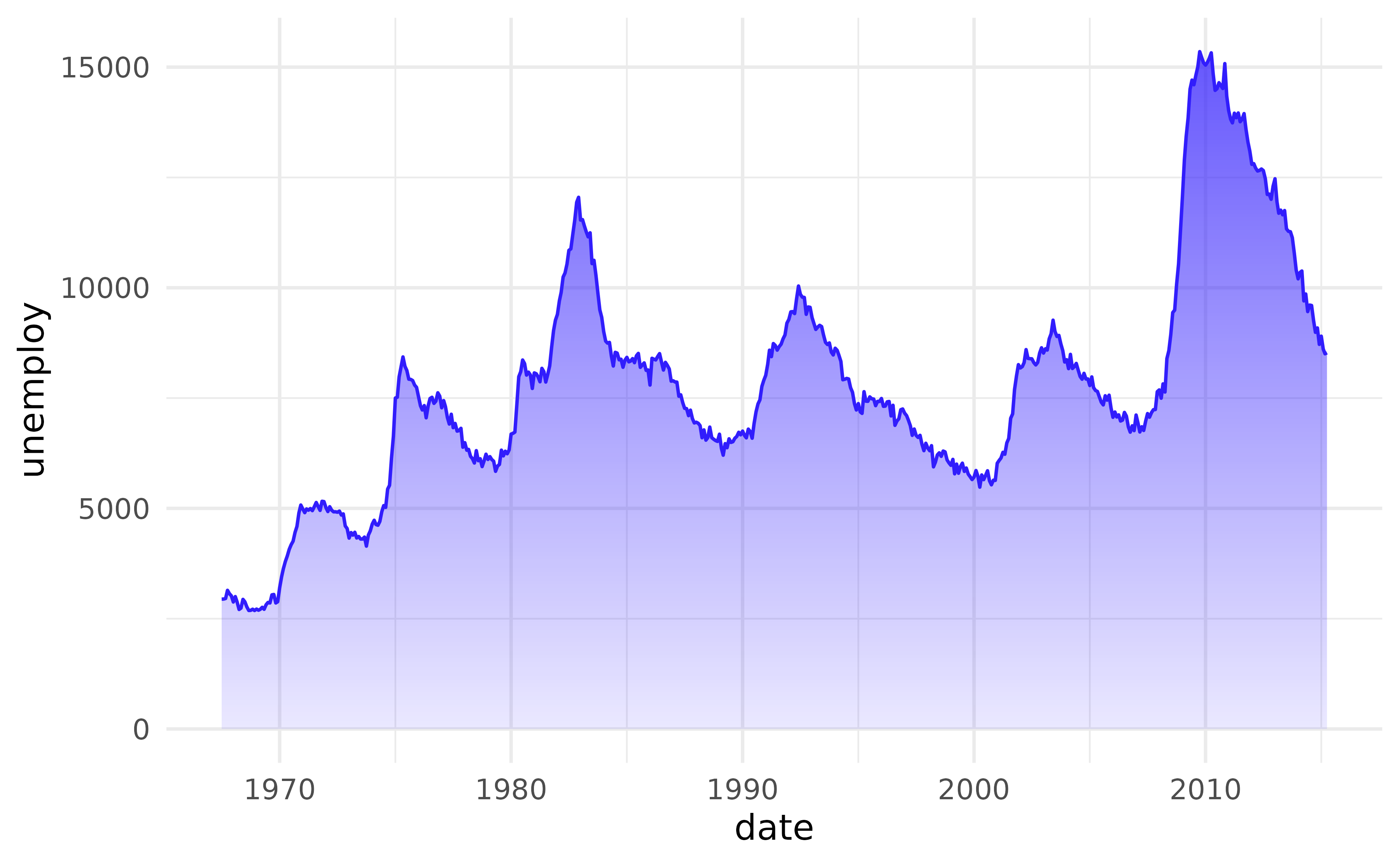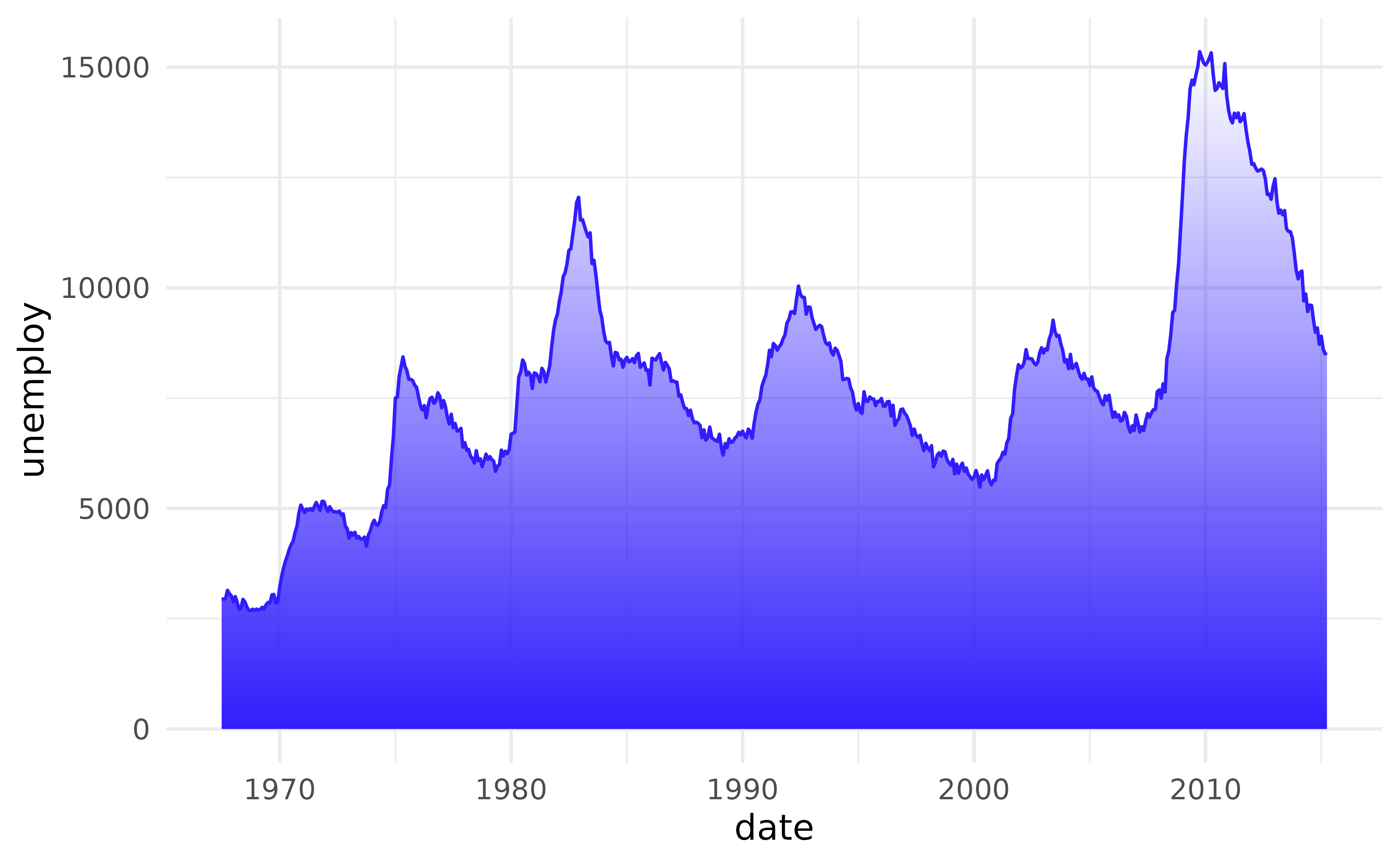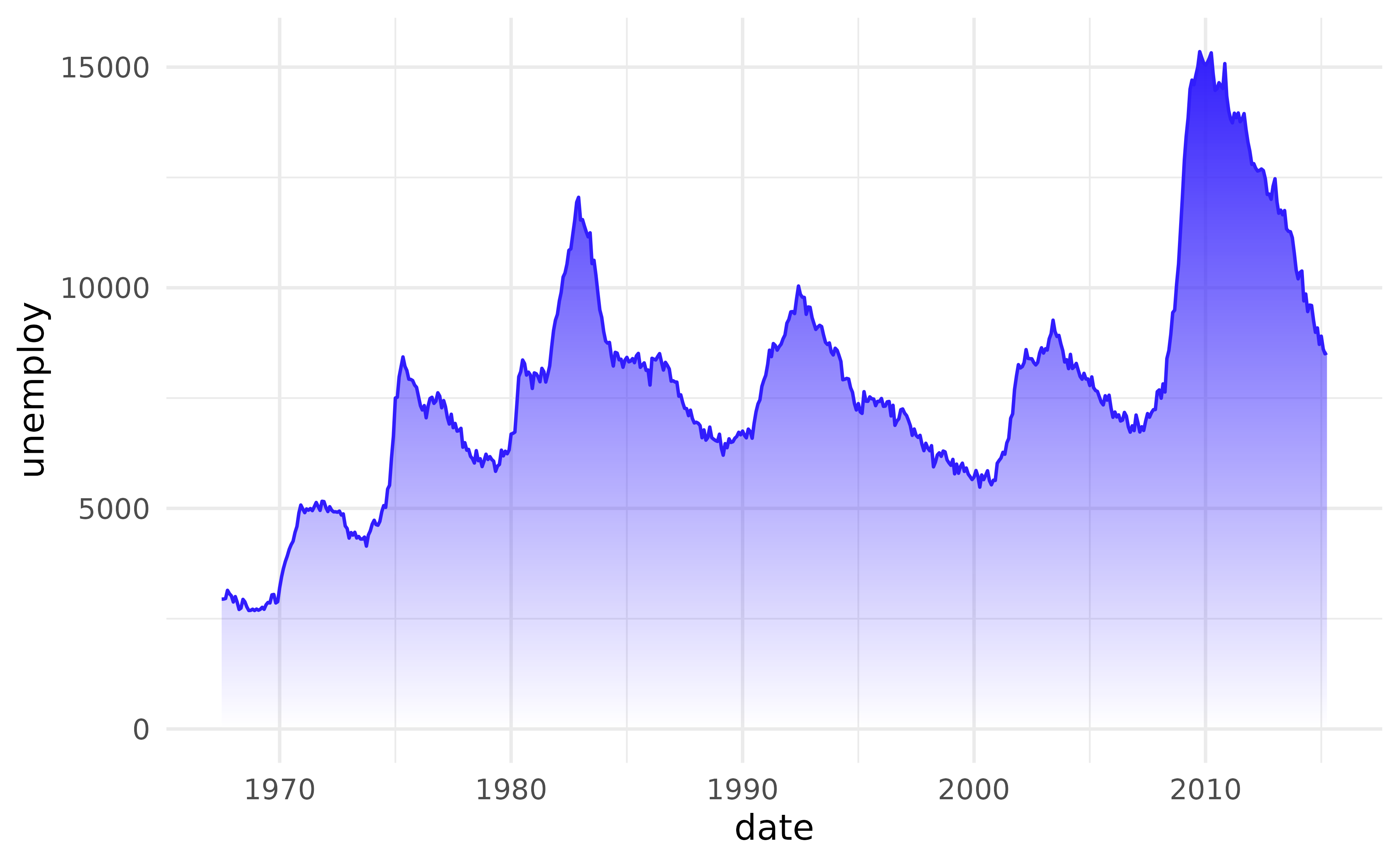 ggplot(economics, aes(date, unemploy)) +