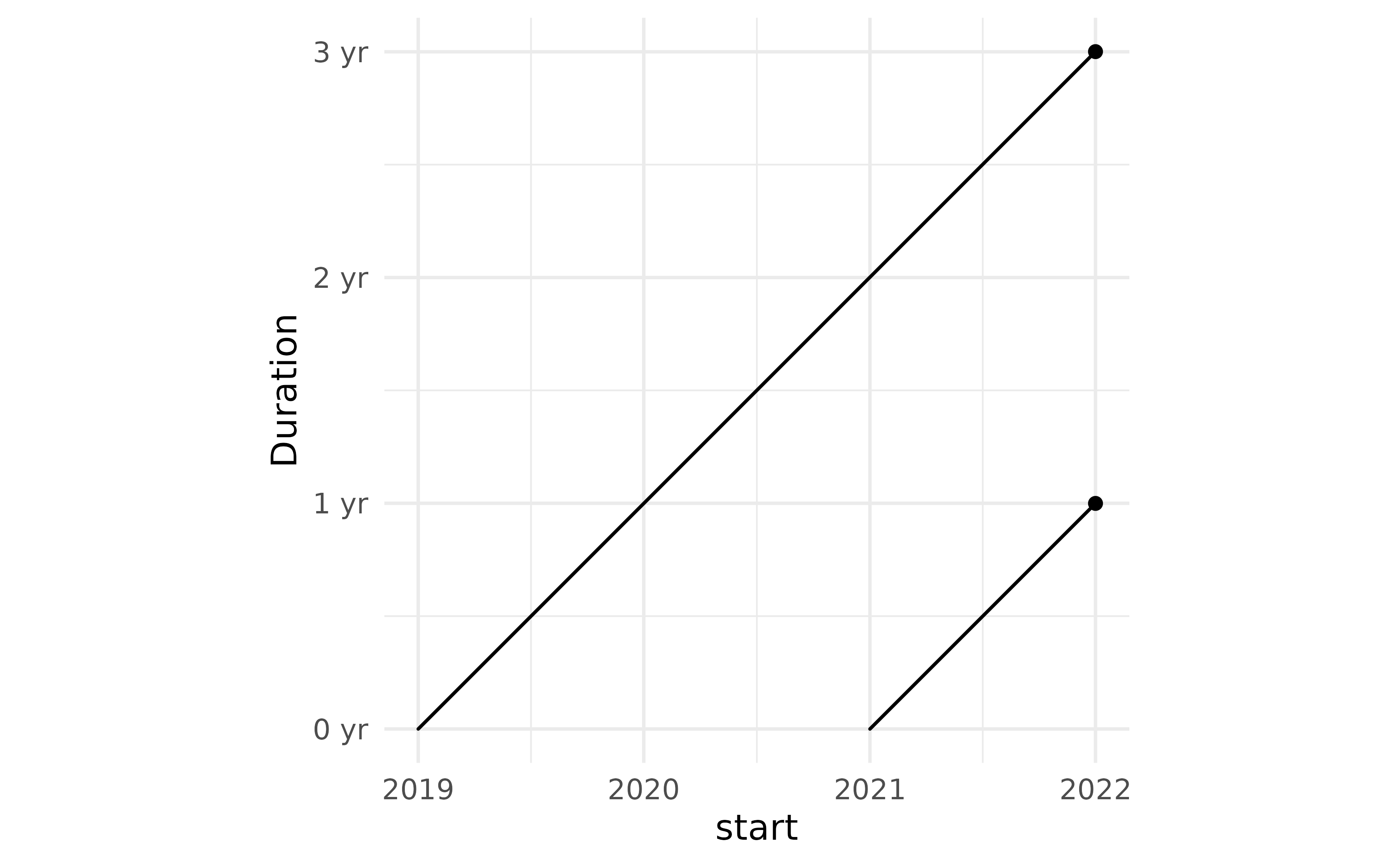 ggplot(data.frame(x = c(0, 2), y = c(0, 0)), aes(x, y)) +